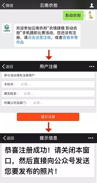 1、活動(dòng)期間,參賽選手每天通過【云南農(nóng)擔(dān)】微信“影動(dòng)農(nóng)擔(dān)”平臺(tái)投稿。
