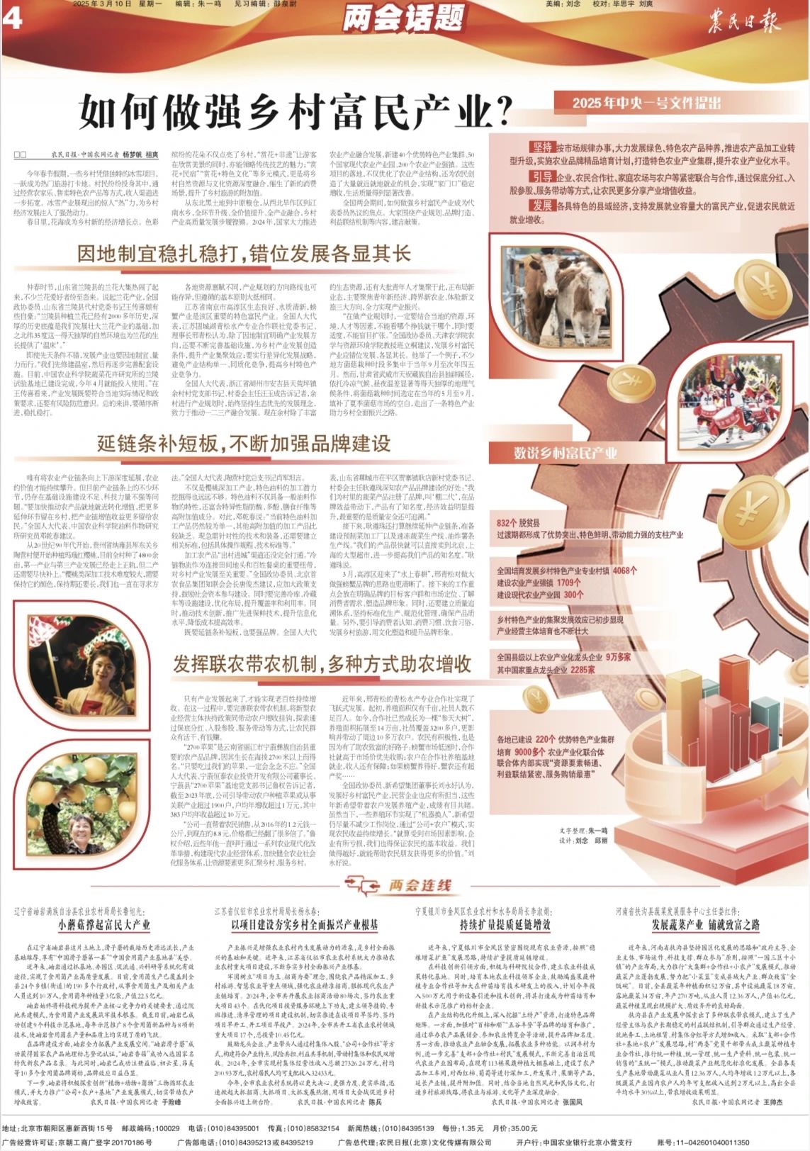 全國(guó)兩會(huì)期間,如何做強(qiáng)鄉(xiāng)村富民產(chǎn)業(yè)成為代表委員熱議的焦點(diǎn)。大家圍繞產(chǎn)業(yè)規(guī)劃、品牌打造、利益聯(lián)結(jié)機(jī)制等內(nèi)容,建言獻(xiàn)策。