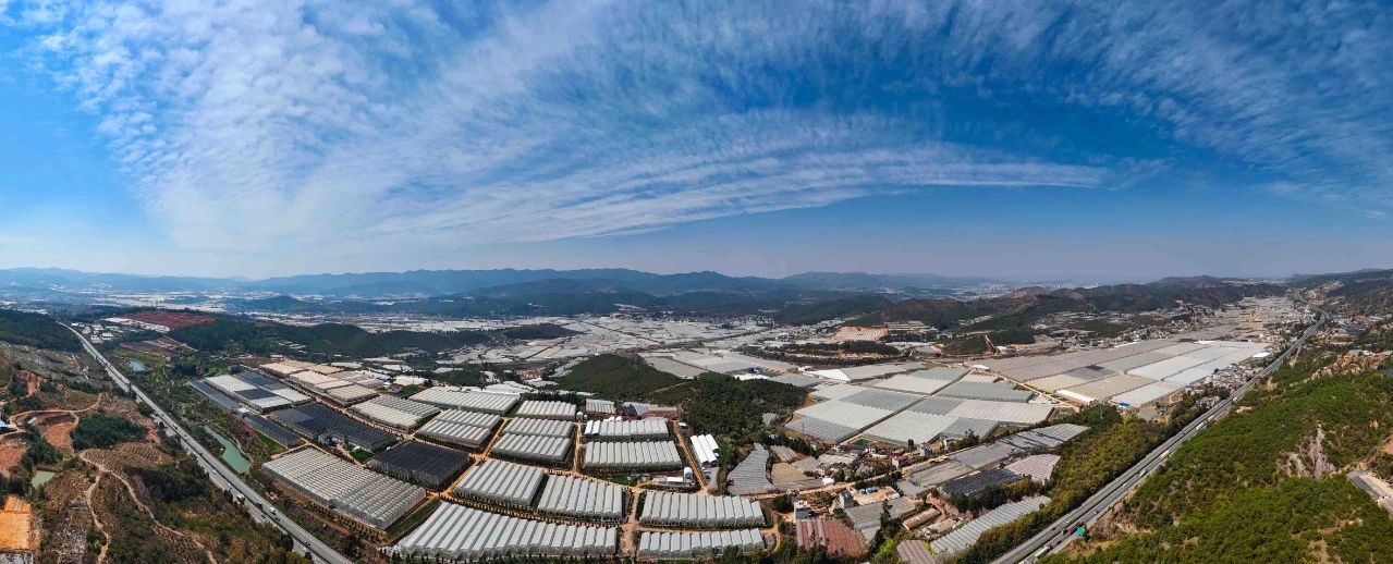 昆明市晉寧區(qū)現(xiàn)代花卉產(chǎn)業(yè)園區(qū)俯瞰圖。云南日報記者 高吳雙、舒倩/攝