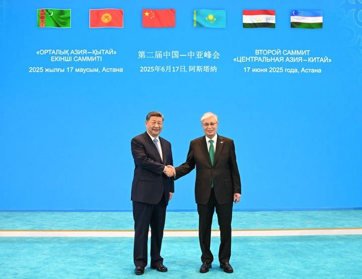 當?shù)貢r間6月17日下午,第二屆中國—中亞峰會在阿斯塔納獨立宮舉行。哈薩克斯坦總統(tǒng)托卡耶夫主持會議。中國國家主席習近平、吉爾吉斯斯坦總統(tǒng)扎帕羅夫、塔吉克斯坦總統(tǒng)拉赫蒙、土庫曼斯坦總統(tǒng)別爾德穆哈梅多夫、烏茲別克斯坦總統(tǒng)米爾濟約耶夫出席。元首們在友好氣氛中共同回顧西安峰會以來中國—中亞各領(lǐng)域合作成果,展望未來發(fā)展方向,一致決定弘揚“中國—中亞精神”,堅持永久睦鄰友好,攜手推動中國—中亞命運共同體建設不斷取得新成就。