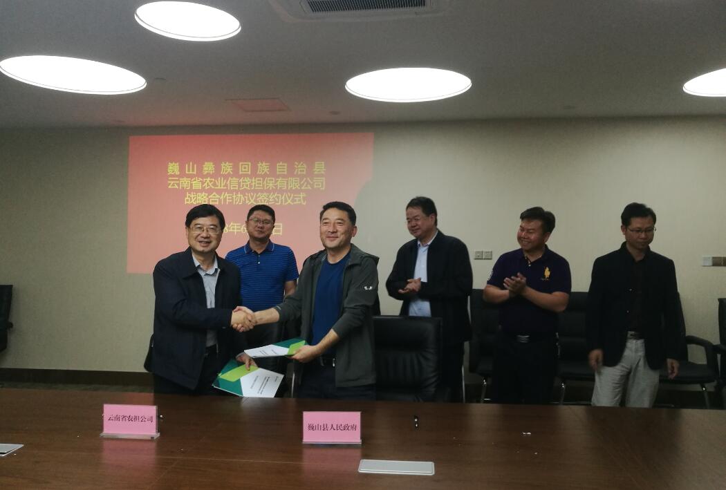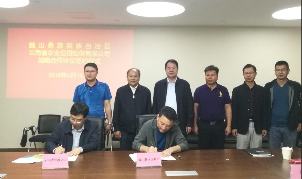 6月14日上午,公司與巍山彝族回族自治縣簽訂了戰(zhàn)略合作協(xié)議。巍山縣縣委副書記、縣長王利偉率縣財政局、農(nóng)業(yè)局及巍山縣農(nóng)村商業(yè)銀行與省農(nóng)擔(dān)公司進行座談,省農(nóng)擔(dān)公司郭影董事長、杜開波總經(jīng)理參加會議,雙方就共同推進巍山縣農(nóng)擔(dān)工作深入交換意見。