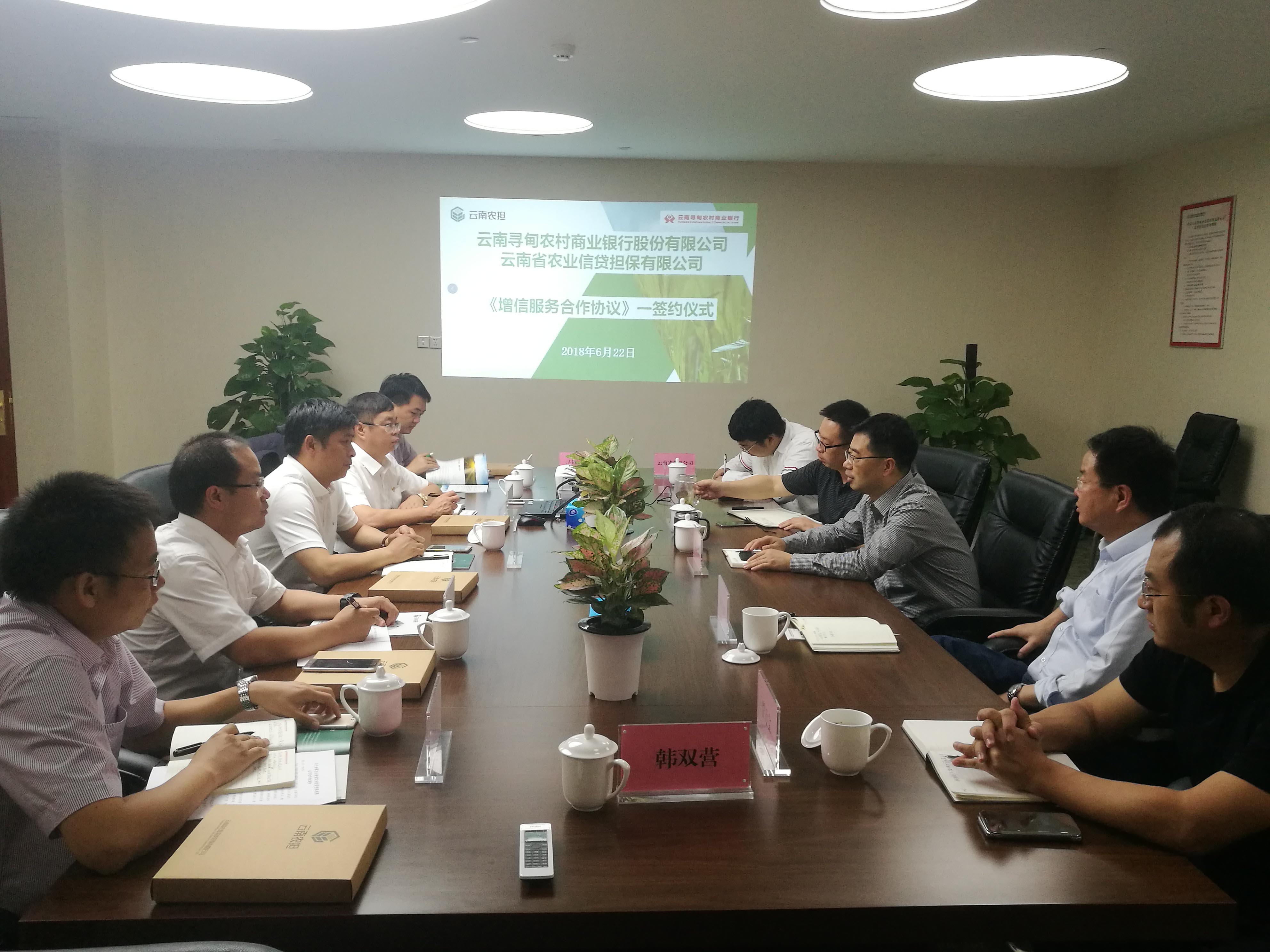 6月22日下午,為認(rèn)真貫徹落實(shí)《中共中央 國務(wù)院關(guān)于實(shí)施鄉(xiāng)村振興戰(zhàn)略的意見》(中發(fā)〔2018〕1號)和省委、省政府關(guān)于發(fā)展“三農(nóng)"的決策部署,緊緊圍繞“一村一品、一縣一業(yè)”發(fā)展新格局,為緩解新型農(nóng)業(yè)經(jīng)營主體融資難、融資貴的問題,遵循合作共贏理念,整合各自優(yōu)勢,構(gòu)建銀擔(dān)聯(lián)合創(chuàng)新、聯(lián)合推動、風(fēng)險(xiǎn)共擔(dān),省農(nóng)擔(dān)公司與尋甸縣農(nóng)村商業(yè)銀行本著互惠互利、讓利于農(nóng)的原則,由尋甸農(nóng)商行董事長虞燕林帶隊(duì)、行長李葉忠、副行長范彪等一行前往省農(nóng)擔(dān)公司與董事長郭影、總經(jīng)理杜開波、副總經(jīng)理廖寅皓、農(nóng)擔(dān)二部負(fù)責(zé)人賈萬文等進(jìn)行會談,會議期間雙方簽署了尋甸縣增信服務(wù)合作協(xié)議,為下一步業(yè)務(wù)開展打下了堅(jiān)實(shí)的基礎(chǔ)。