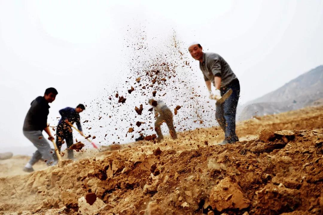 甘肅臨夏回族自治州駐村扶貧干部在東鄉(xiāng)族自治縣高山鄉(xiāng)布楞溝村幫助農(nóng)民平地種樹(shù)(2015年4月1日攝)?!⌒氯A社記者 陳斌 攝