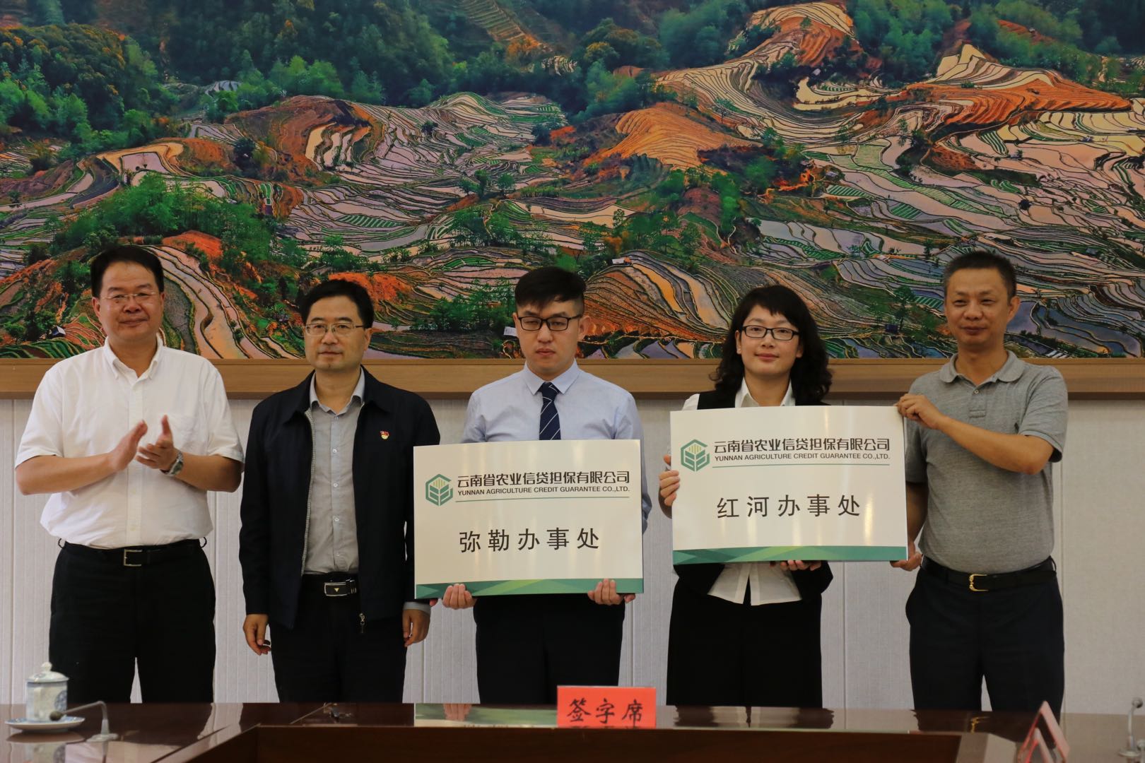 8月21日上午云南省農(nóng)業(yè)信貸擔(dān)保有限公司與紅河州人民政府戰(zhàn)略合作協(xié)議簽訂暨公司紅河辦事處、彌勒辦事處授牌儀式在紅河州會堂正式舉行。州人民政府副州長常斌、公司董事長郭影、總經(jīng)理杜開波及紅河州各相關(guān)部門、各銀行金融機(jī)構(gòu)及各縣市區(qū)農(nóng)業(yè)、財政部門參加了會議。