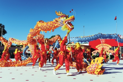 9月23日,秋高氣爽,艷陽高照,首屆中國農(nóng)民豐收節(jié)隆重舉行,主會場設(shè)在北京農(nóng)業(yè)展覽館。圖為來自北京市平谷區(qū)的農(nóng)民舞龍隊(duì)在盡情表演,以表達(dá)五谷豐登喜慶豐收的喜悅心情。