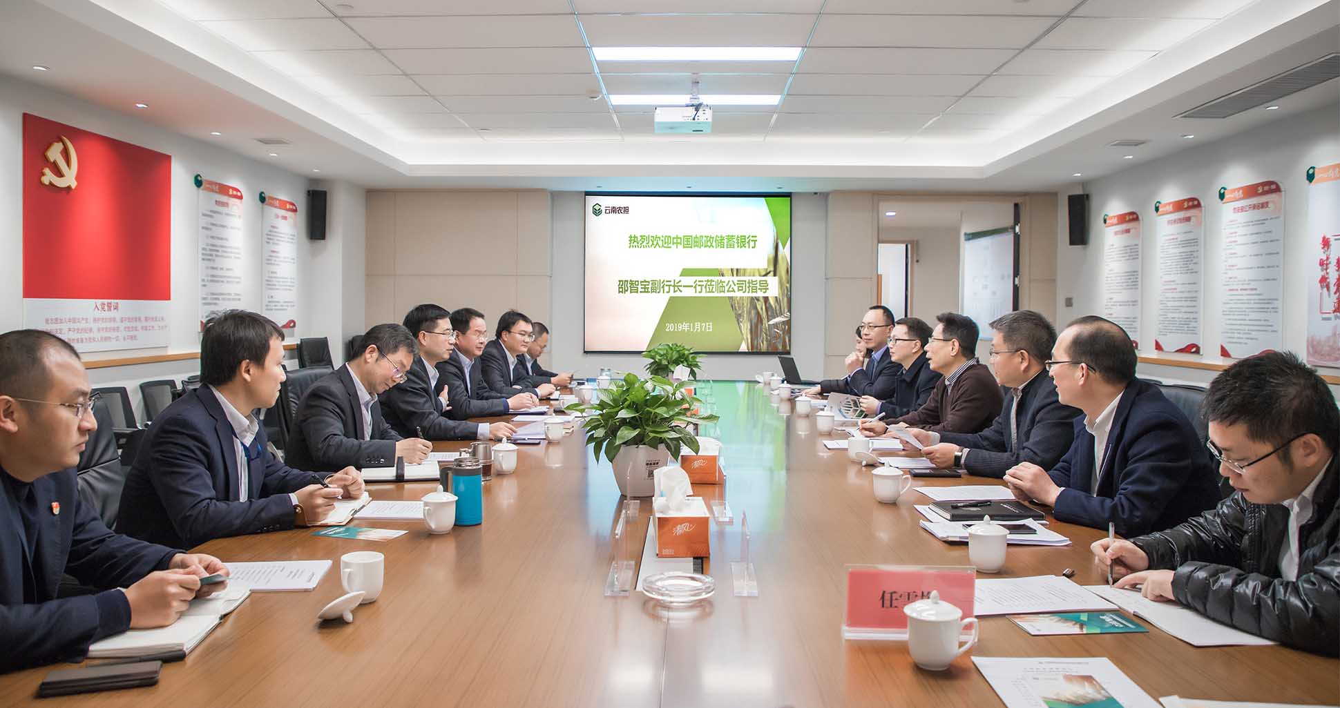 1月7日,中國(guó)郵政儲(chǔ)蓄銀行副行長(zhǎng)邵智寶在郵儲(chǔ)銀行云南省分行唐華建行長(zhǎng)陪同下到云南省農(nóng)擔(dān)公司調(diào)研,雙方就加強(qiáng)銀擔(dān)合作進(jìn)行深入交流座談。