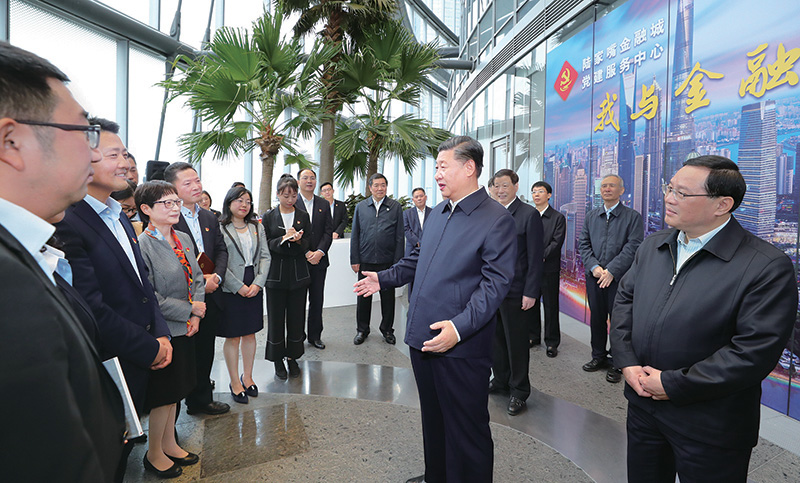 2018年11月6日至7日,中共中央總書記、國家主席、中央軍委主席習(xí)近平在上海考察。這是6日上午,習(xí)近平在上海中心大廈22層的陸家嘴金融城黨建服務(wù)中心,同正在聯(lián)合開展主題黨日活動的企業(yè)黨員親切交談。
