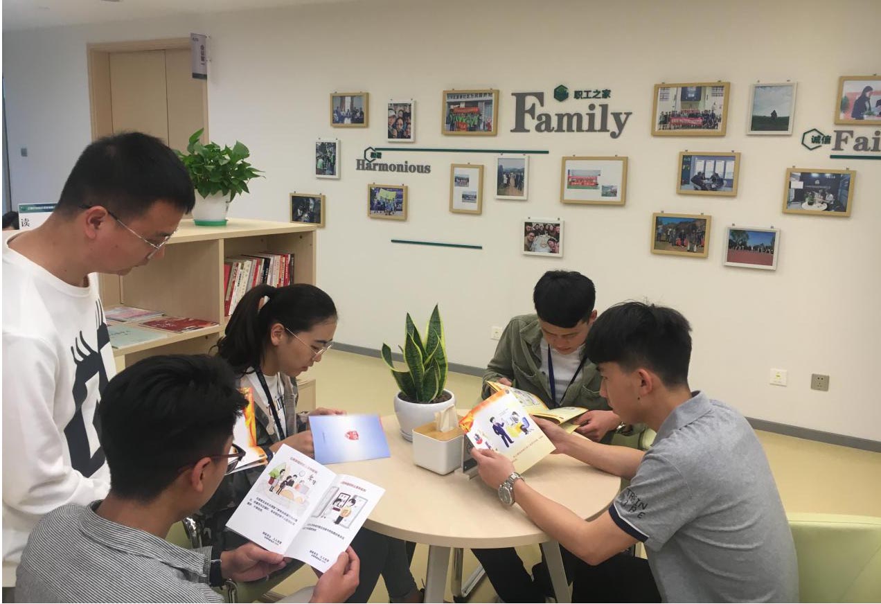 公司員工在讀書(shū)角認(rèn)真閱讀國(guó)家安全工作宣傳手冊(cè)