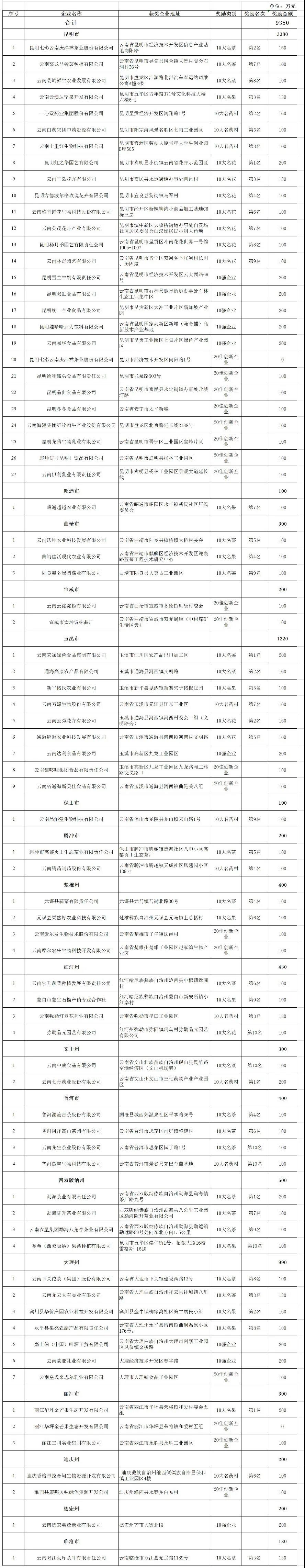 點(diǎn)擊下載 2020年度云南省“10大名品”和綠色食品“10強(qiáng)企業(yè)”“20佳創(chuàng)新企業(yè)”獎勵資金情況表