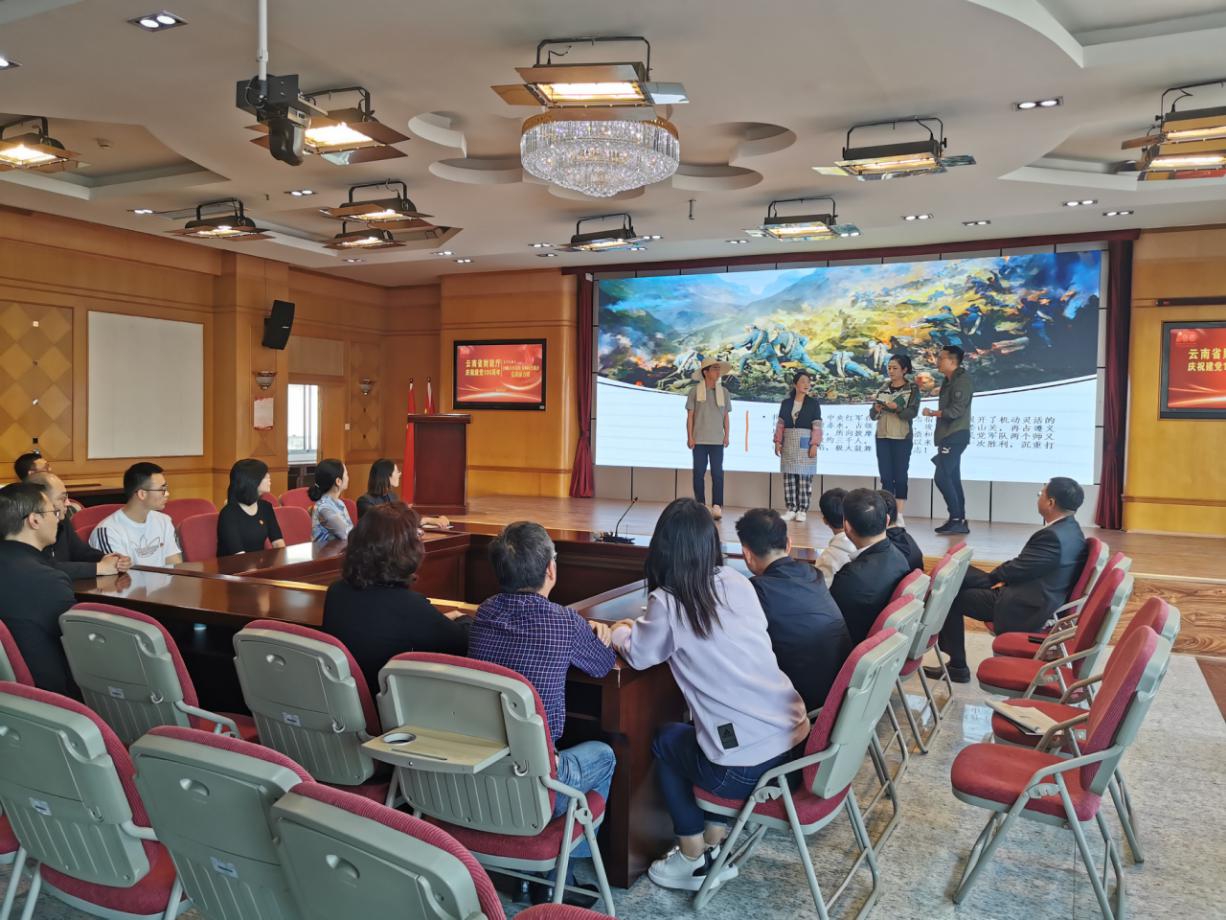 首場(chǎng)黨課接力賽共有4個(gè)黨支部組隊(duì)參加,公司黨總支作為最后一支參賽隊(duì)出場(chǎng)。公司黨總支參賽黨課結(jié)合農(nóng)擔(dān)業(yè)務(wù)實(shí)際,以“助農(nóng)路上感黨恩”為主題,通過情景劇方式,從業(yè)務(wù)工作場(chǎng)景契入,以時(shí)間為軸,由13名黨員職工分別演繹了扎西會(huì)議、云南第一個(gè)黨支部建立、紅軍過迪慶故事、阿佤人民唱新歌、共克貧困奔小康等5個(gè)故事,深情講述了云南黨史上廣為流傳的紅色故事、難忘的光輝時(shí)刻,以及黨的好政策。公司黨總支部副書記、董事長(zhǎng)杜開波主持了講黨課活動(dòng)。