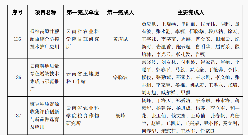 授予“湖南省早稻集中育秧技術(shù)推廣”等81個項目為農(nóng)業(yè)技術(shù)推廣成果獎一等獎,“循環(huán)水工程化智能化養(yǎng)殖關(guān)鍵技術(shù)示范應用與推廣”等160個項目為農(nóng)業(yè)技術(shù)推廣成果獎二等獎,“河西肉牛生態(tài)健康養(yǎng)殖技術(shù)集成與示范”等160個項目為農(nóng)業(yè)技術(shù)推廣成果獎三等獎;授予吉林省伊通滿族自治縣景臺鎮(zhèn)綜合服務中心鄭立晨等500人農(nóng)業(yè)技術(shù)推廣貢獻獎;授予“大豆-玉米帶狀復合種植技術(shù)模式集成創(chuàng)新與示范推廣”等20個項目為農(nóng)業(yè)技術(shù)推廣合作獎(獲獎名單詳見附件)。