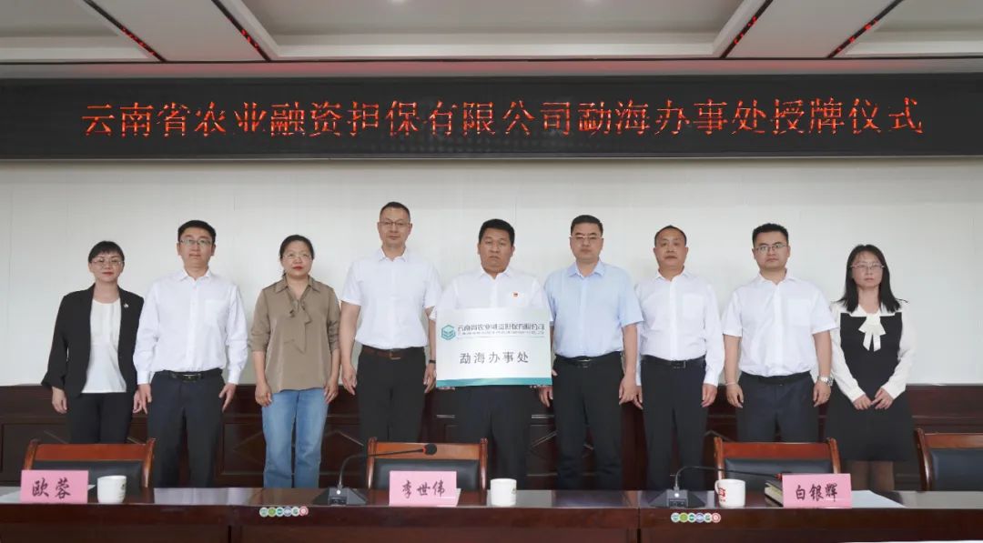 2023年3月21日下午,云南省農(nóng)業(yè)融資擔(dān)保有限公司勐海辦事處授牌儀式在勐??h人民政府舉行。勐海縣委常委、常務(wù)副縣長白銀輝、公司總經(jīng)理李世偉、勐??h財政局局長、縣金融辦主任歐蓉、縣財政局副局長、縣金融辦副主任劉潤等領(lǐng)導(dǎo)出席會議。縣政府辦、縣發(fā)改局、縣自然資源局、縣農(nóng)業(yè)農(nóng)村局、縣林草局、縣鄉(xiāng)村振興局、縣市場監(jiān)管局、縣11個鄉(xiāng)(鎮(zhèn))人民政府分管領(lǐng)導(dǎo)、縣人民銀行及縣域內(nèi)金融機構(gòu)主要負(fù)責(zé)人、農(nóng)擔(dān)公司戰(zhàn)略發(fā)展部、業(yè)務(wù)發(fā)展部、西雙版納辦事處參加儀式。
