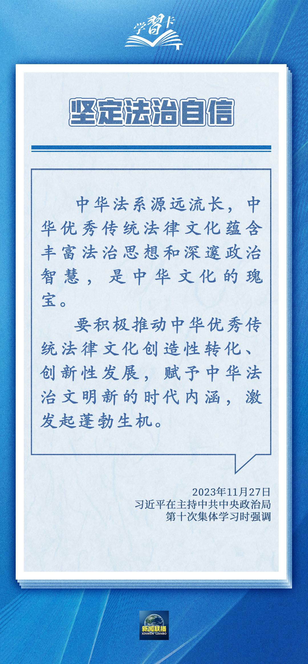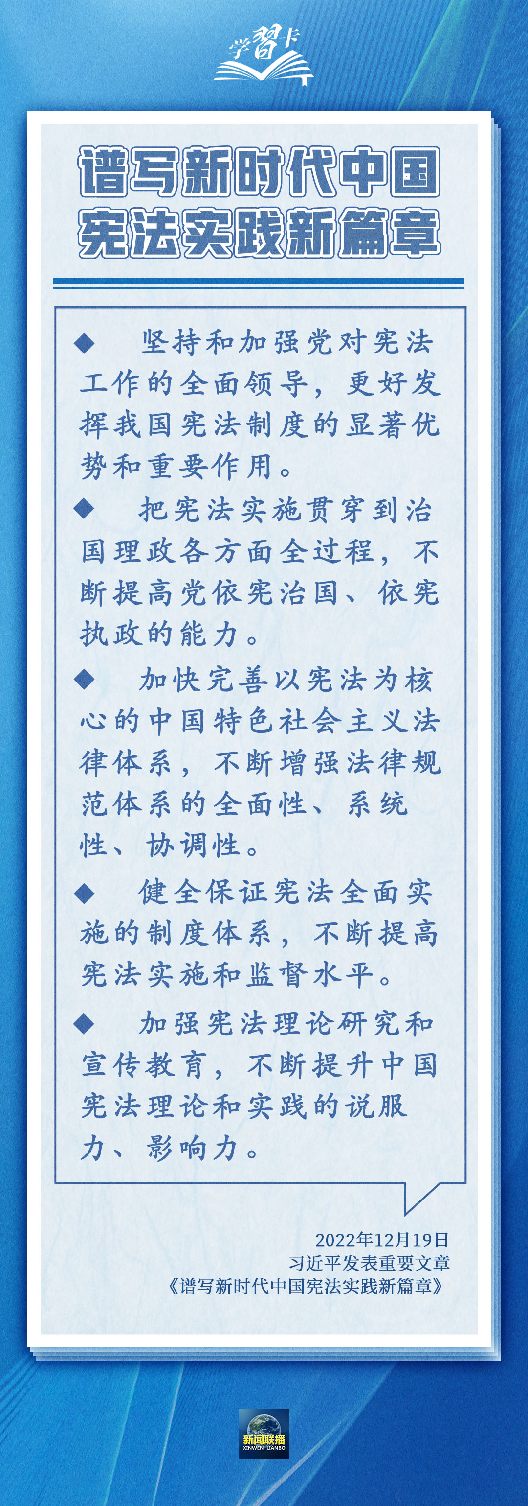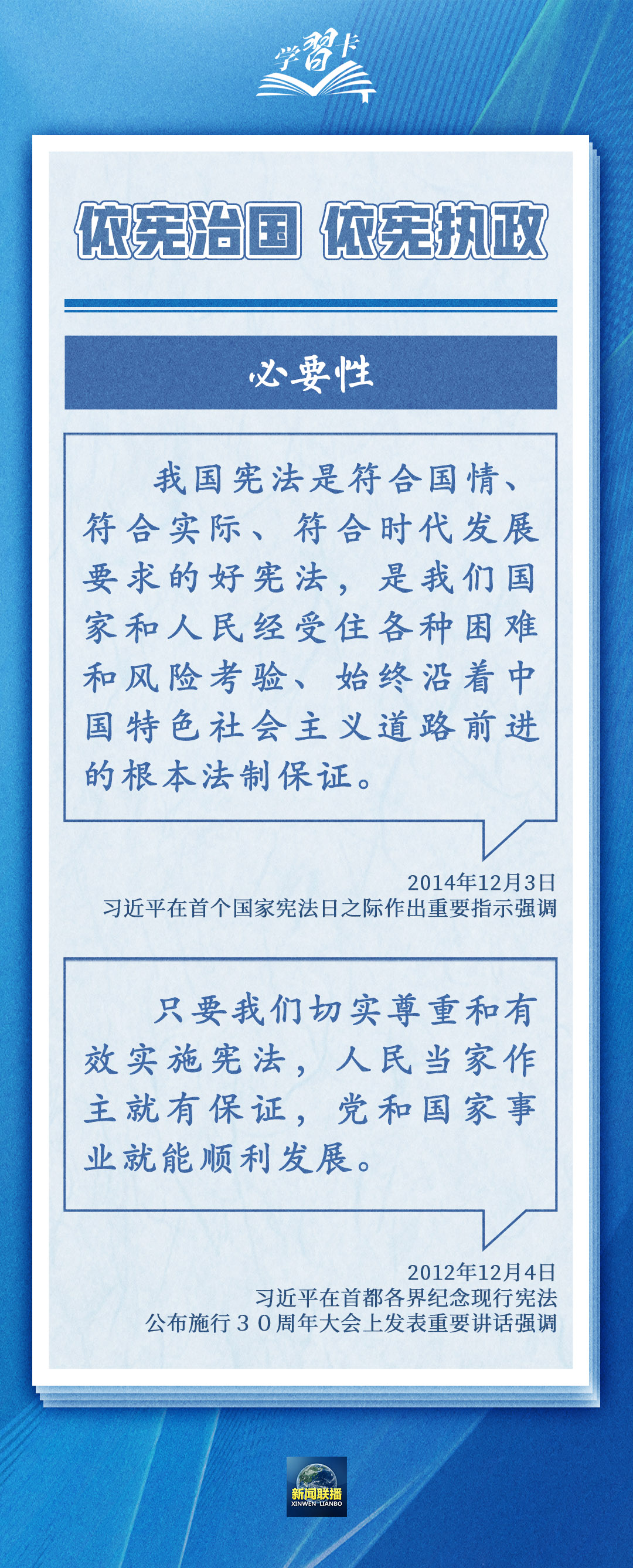 圍繞依憲治國、依憲執(zhí)政,習(xí)近平總書記多次在不同場合強(qiáng)調(diào),憲法是黨和人民意志的集中體現(xiàn),豐富和發(fā)展了中國特色社會主義法治理論,也為推進(jìn)國家治理體系和治理能力現(xiàn)代化指明了根本路徑和努力方向。一起學(xué)習(xí)→