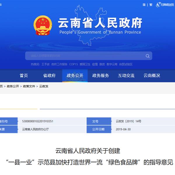 近日,云南省打造“綠色食品牌”工作領導小組辦公室發(fā)布通知,公布了2022年度云南省“一縣一業(yè)”示范創(chuàng)建縣和特色縣名單。